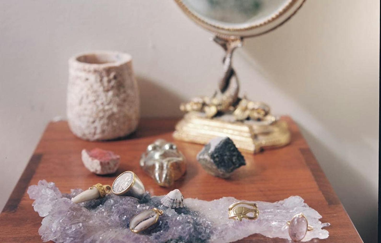 When I started making jewelry I began to see how much energy goes into creating adornment that can hold your vibrational intention. I was living in New York City at the time and was seeking a teacher, and then I had a terrible apartment fire, and lost everything! It was a beautiful clearing and it gave me the permission I needed to get weirder and follow my path. I found my teacher in Sarah Thomas in North Carolina, and I just started flying down there and studying with them. That experience allowed me to go deeper into what my heart was longing for, to bring spiritual meaning into the art I was creating.