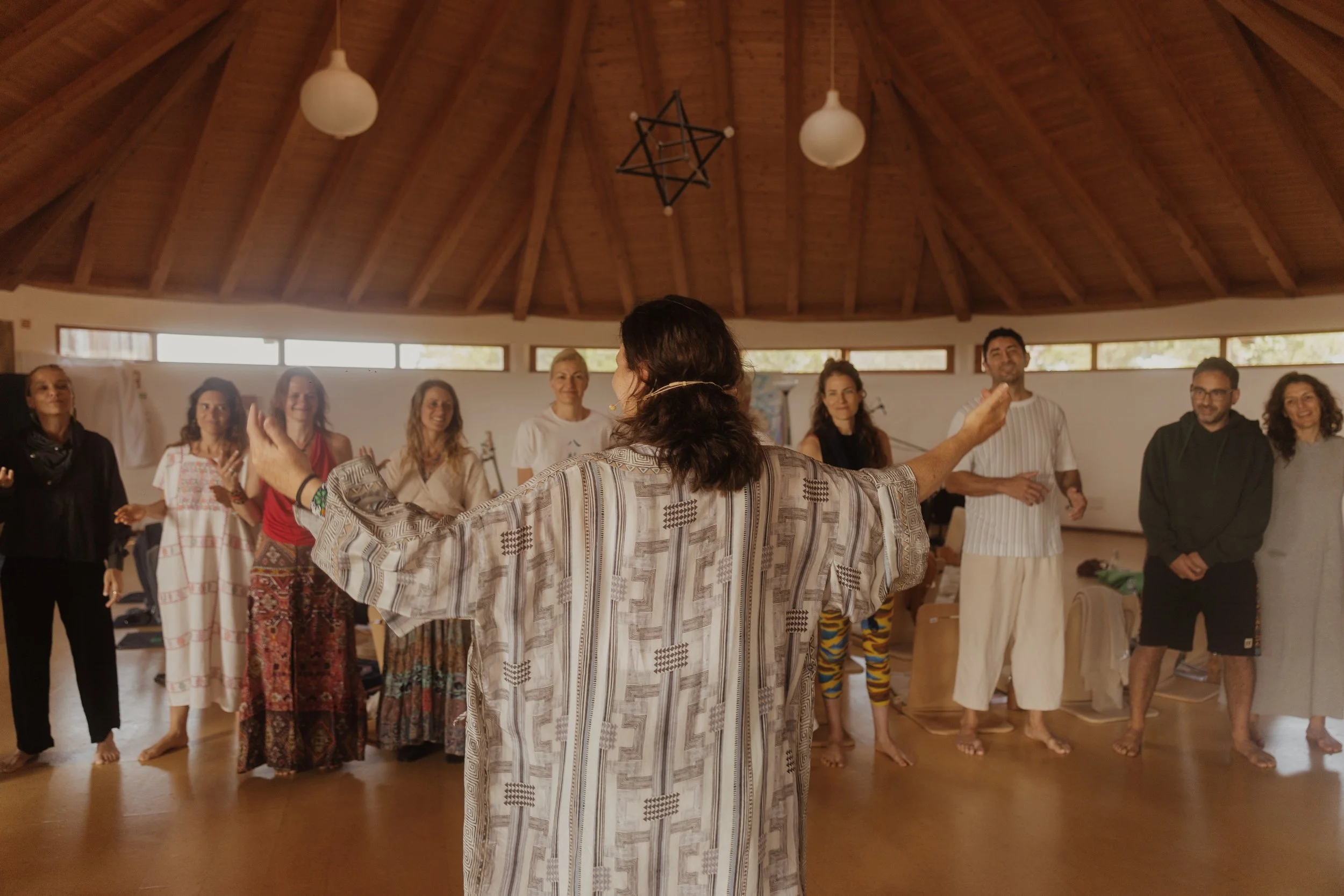 The voice is the most healing tool to connect our inner and outer worlds, as it is the only way we can create vibration through the body. With it we are learning again to express what is inside of us, and from there we can sing. Just exhale and make a sound - hmm, ah, ohh, eeee. The biggest release of energy is through our voice. The times in life where we don’t control our sound are the most ecstatic moments of joy and pain, like orgasm and in grief. As kids our muscle of crying is still so alive, but as adults we start to close. We have a natural knowledge of the body and how to release but we have to be open mentally.