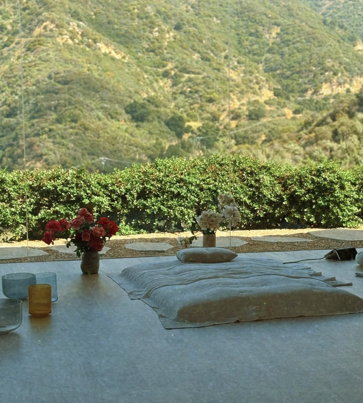 I work with people both one-on-one and in groups, offering personalised sessions from my healing space in Ojai as well as online. I also lead weekly breathwork classes at Light and Space, a local yoga studio, as well as do an online three-month breathwork and integrative healing journey. I also teach Reiki, and offer certification trainings as well as a masters retreat, that combines palm reading, Zen practice, and immersive ceremonies with the elements, including fire ceremonies at the local hot springs.