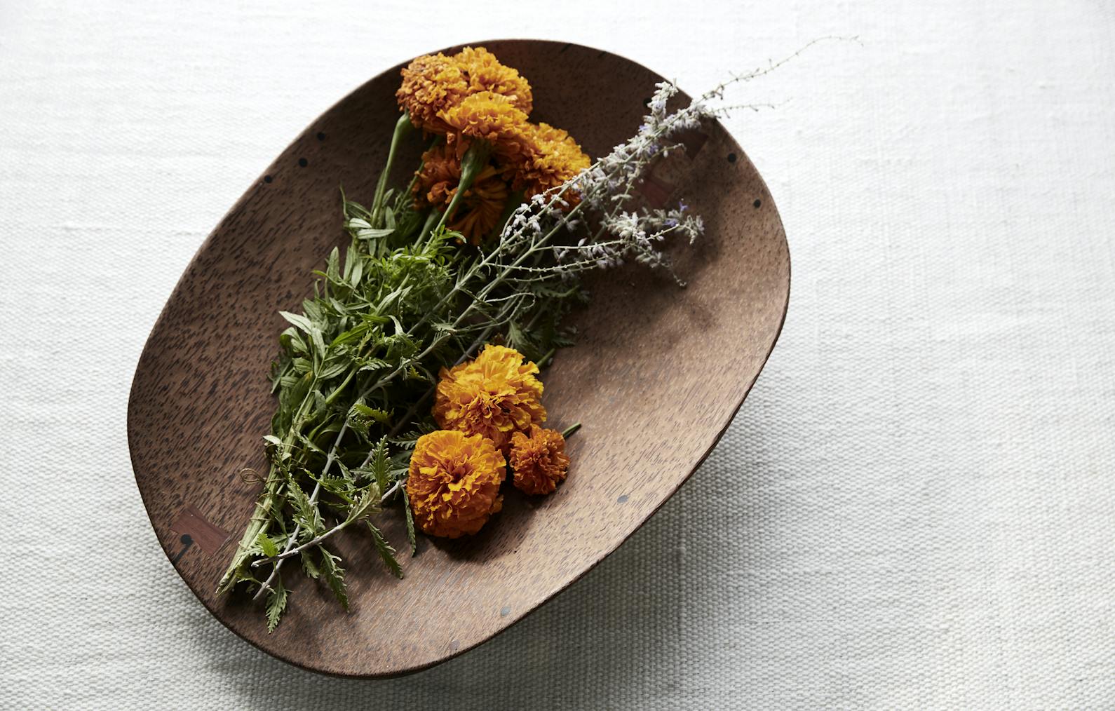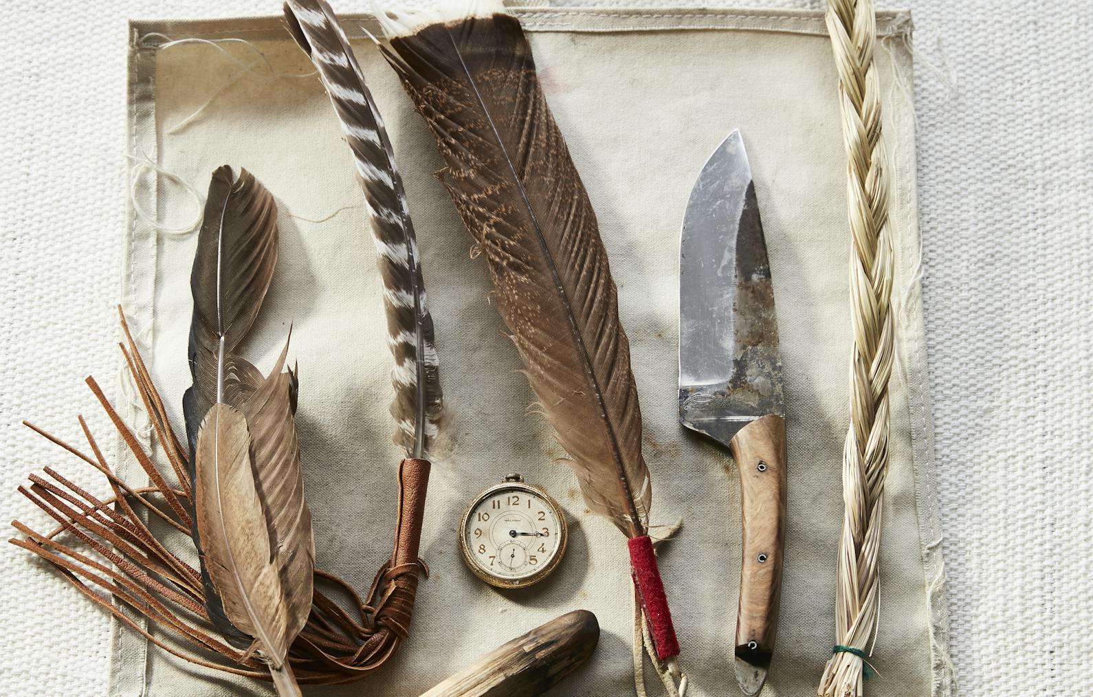 There's always a Ganesh somewhere because philosophically I try to live my life with an aim to help remove obstacles for others (and myself).I usually have bitter herbs nearby to help support my system when I get tense or frustrated. I always have a crow feather around because crows have been good teachers to me and a totem that has shown up on different occasions when I needed support from outside of myself. There's usually I Ching coins somewhere - I like it as a practice of divination and contemplation. Oh, and plants and dogs. I’d be nothing without those.