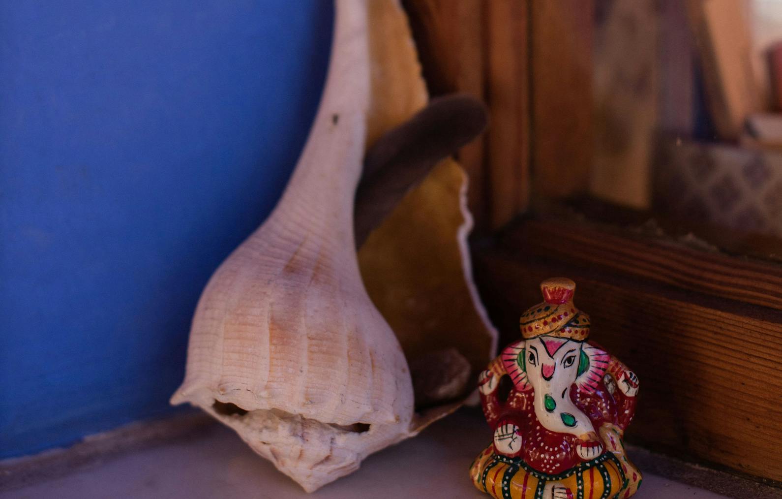 A salt crystal lamp because of the minerals and they make beautiful light. I believe everything we have around us is connected to us. I love to have sea shells, and I put them everywhere. To be surrounded by nature in your home is good but whatever makes you feel good. Books also have a really good frequency.
